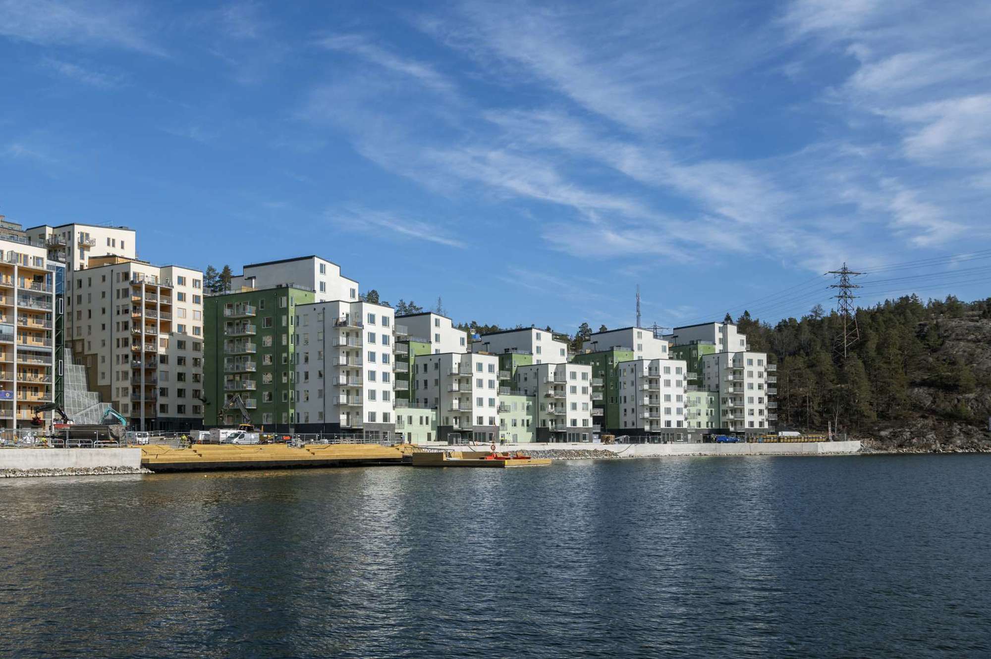5 stora flerbostadshus i etage ut mot vattnet på Tollare Strand i Nacka