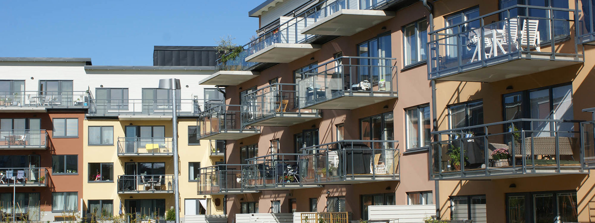 Nyproduktion av 3st flerbostadshus, stommen av betong med Weber Serporoc fasad system.